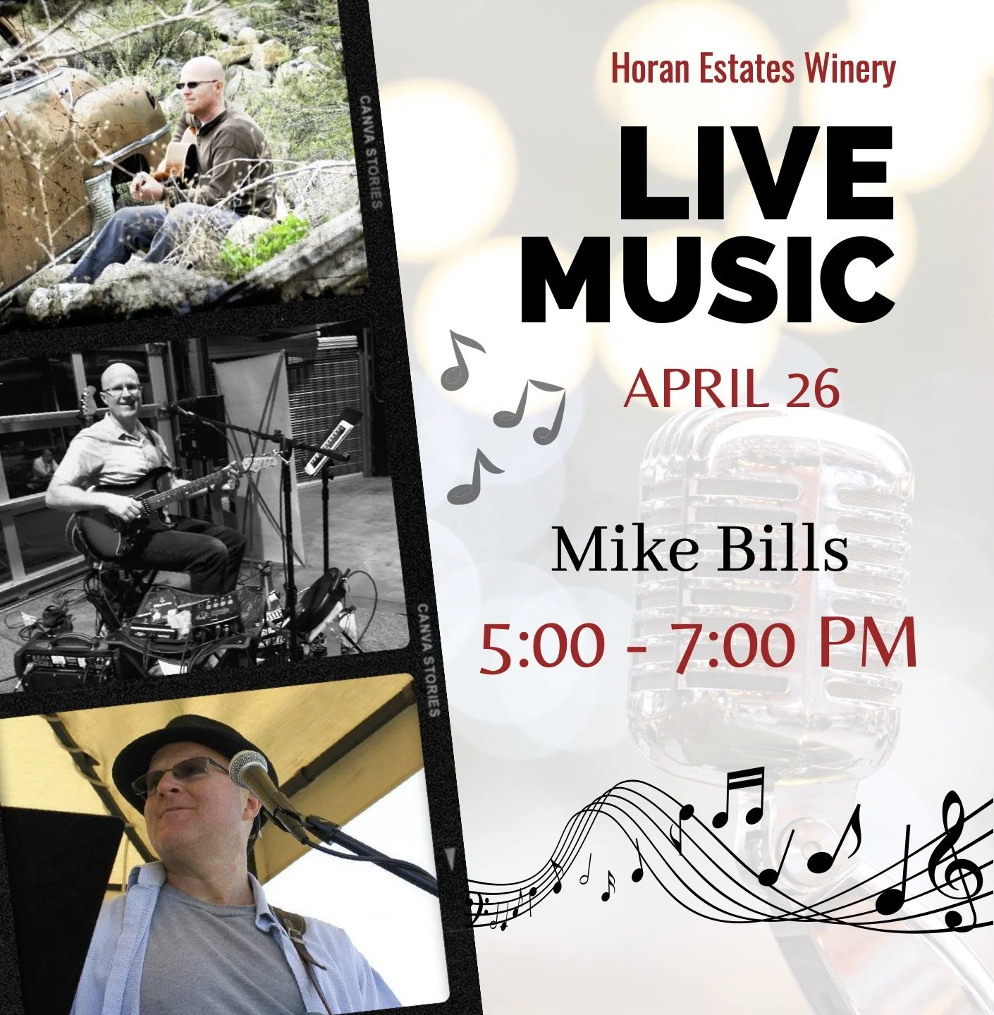 Join us for live music in the tasting room featuring this weeks musician Mike Bills